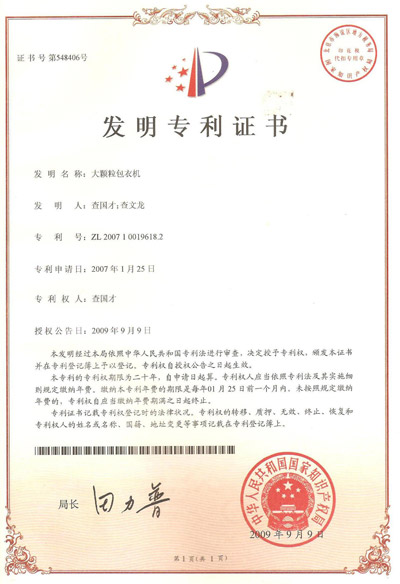 認(rèn)證簡介:大顆粒包衣機(jī)發(fā)明專利