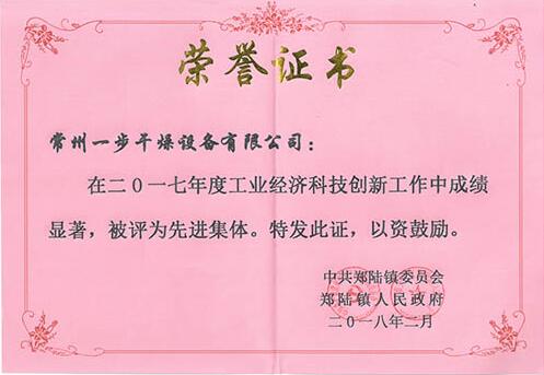 您現(xiàn)在的位置:常州一步干燥設(shè)備有限公司 >> 企業(yè)榮譽