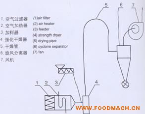 專業(yè)直銷淀粉氣流干燥設(shè)備,干燥的淀粉經(jīng)旋風(fēng)分離器、關(guān)風(fēng)器排出,廢氣經(jīng)風(fēng)機(jī)排入大氣。