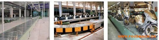 板鏈輸送機(jī)適用于形狀不規(guī)則物品的重載輸送。鏈條選用空心大輥?zhàn)訋Ц郊湕l,在兩側(cè)同步鏈條的附件上用板狀構(gòu)件連接使輸送方...