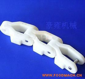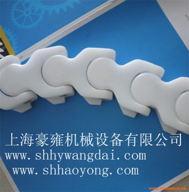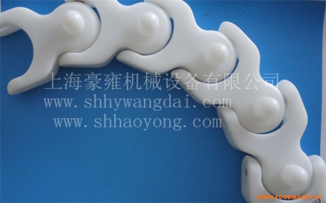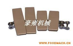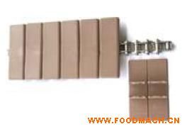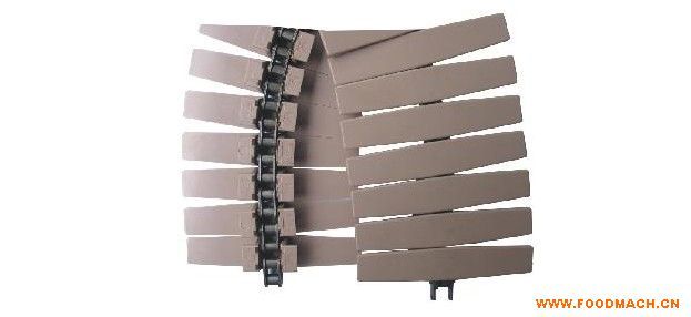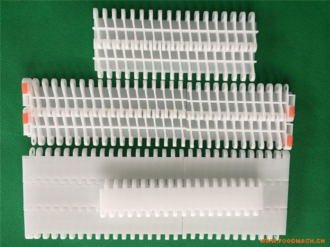 963扣鏈式直行鏈;寬度(mm)82.6/152.4/190.5,節(jié)距38.1mm,低鏈201或304不銹鋼鏈條,傳動鏈設計有低鏈扣住塑料頂板片而成,1米...