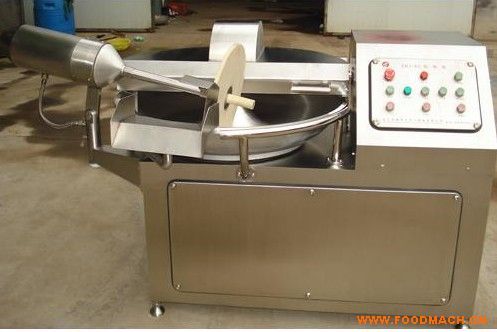 該斬拌機利用斬刀高速旋轉的斬切作用,將肉及輔料斬成肉餡或肉泥,還可以將輔料、冰片。水與肉餡或肉塊一起攪拌均勻。