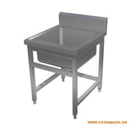單槽水池板材304短紋磨砂板;臺(tái)面為圓角R6,后背為小45度;腿為不銹鋼方管,無(wú)圍板,帶裝飾邊;