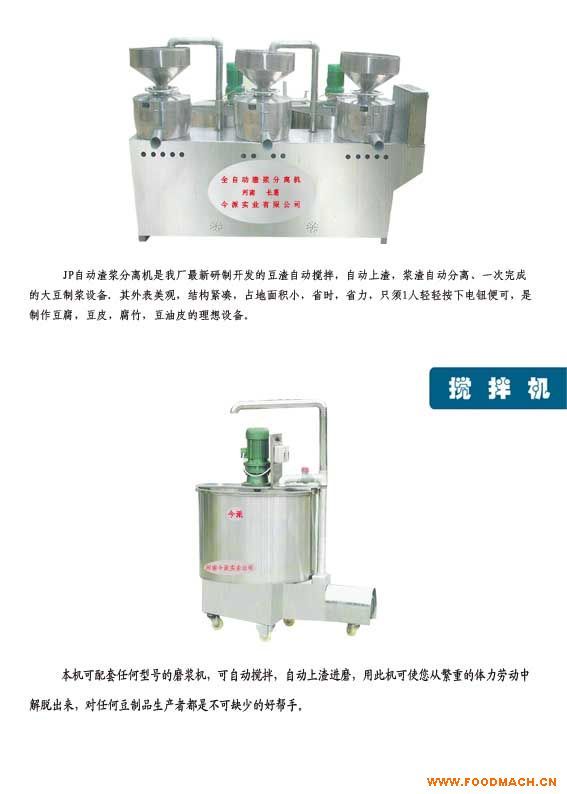豆腐機配套設(shè)備上渣機上渣機(攪拌機)總功率:1.5千瓦(實際功率與生產(chǎn)量大小有關(guān))總成包括:底座,攪拌桶,攪拌葉輪,攪拌...