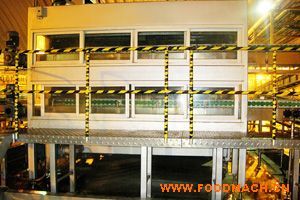 溫罐機采用循環(huán)熱水噴淋殺菌、溫水預冷、冷水冷卻等多段處理,具有節(jié)水、節(jié)熱能等優(yōu)點;實現(xiàn)自動進瓶和出瓶,達到生產(chǎn)線的完...