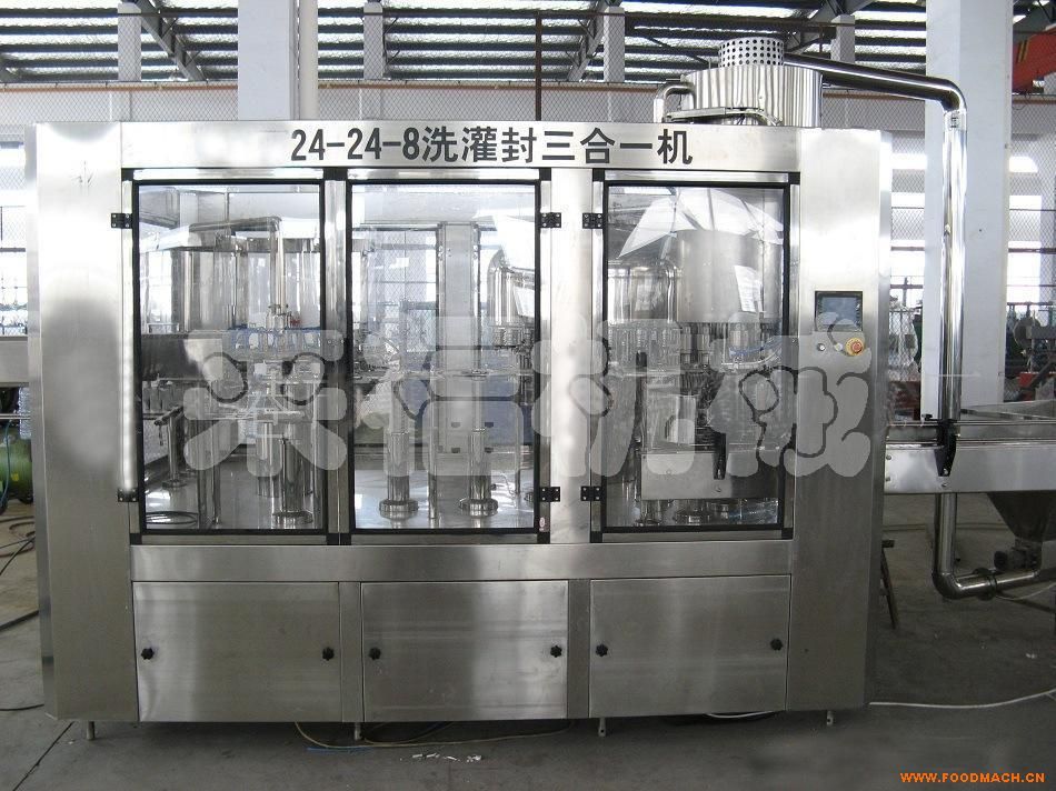 24-24-8型三合一灌裝機主要用于飲料的灌裝作業(yè)。本機將沖洗、灌裝、旋蓋三功能合在一個機體上,全過程實現(xiàn)自動化,適用于聚酯...