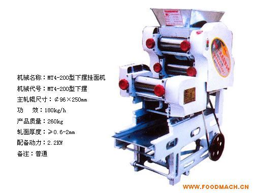 MT4-250自動上桿干面條機全鋼齒輪傳動,全軸承,體積小,結(jié)構緊湊。全自動輸送,一次成型,自動斷面,自動上桿。