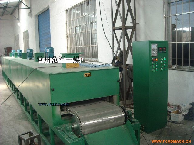 物料由加料器均勻地鋪在網(wǎng)帶上,網(wǎng)帶采用12~60目不銹鋼絲網(wǎng),由傳動(dòng)裝置拖動(dòng)在干燥機(jī)內(nèi)移動(dòng)。干燥機(jī)由若干單元組成,每一單元...