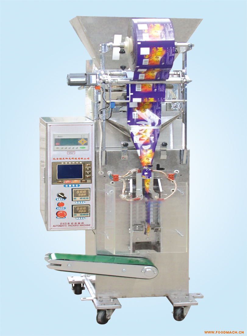 顆粒背封包裝機生產(chǎn)出的包裝袋為背封形狀,可適用于各行各業(yè)顆粒狀的自動包裝需要,可一次完成袋充填,封合,計數(shù)。