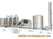 水處理系統(tǒng)成套生產(chǎn)線是由自來水經(jīng)原水水箱通過預(yù)處理至反滲透裝置脫鹽而得純水。