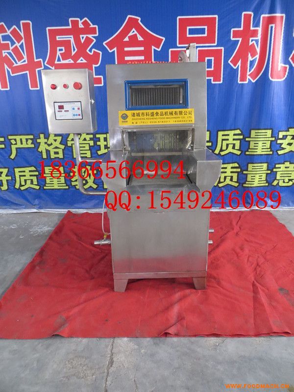 凍肉切塊機可直接斬切-18℃、-24℃標準冷凍雞、無骨凍肉的設(shè)備,該機設(shè)計合理,刀具高頻淬火,切口無撕裂,塊狀整齊。