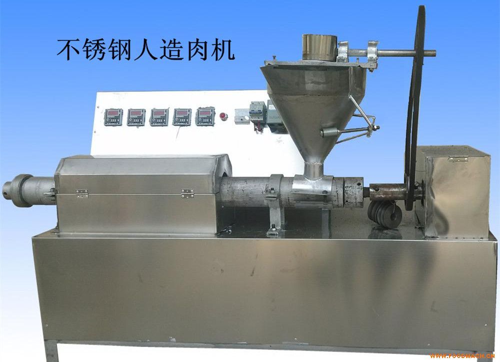 人造肉機(jī)素牛排機(jī)干面筋片機(jī)生產(chǎn)的不同各種的豆制品是通過(guò)更換不同模具來(lái)完成的,如深加工需做保水調(diào)味處理。