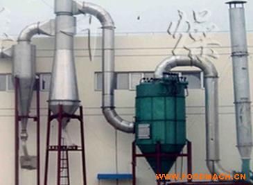 飼料專用沸騰干燥機,物料干燥后由排料口排出,廢氣由沸騰床頂部排出經(jīng)旋風(fēng)除塵器組和布袋除塵器回收固體粉料后排空。