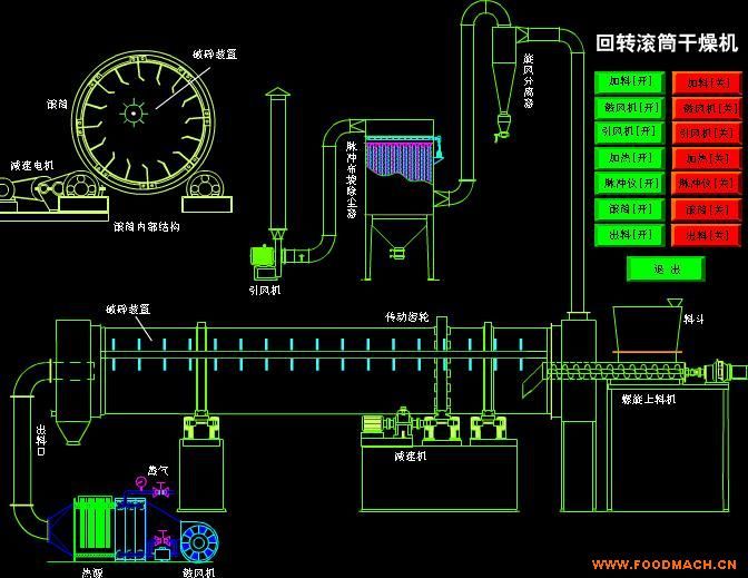 輕質(zhì)碳酸鈣專用回轉(zhuǎn)滾筒干燥機,物料在帶有傾斜的抄板和熱氣流作用下,可調(diào)控地運動至干燥機另一端星形卸料閥排出成品。
