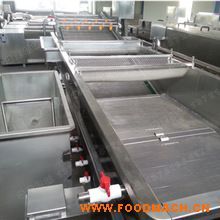 氣泡清洗機采用汽泡翻滾用清水漂洗,經過旋翻催流至輸送網帶,在網帶上進行二次噴淋清洗完全將果蔬外表皮清洗干凈,經過末端...