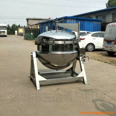 通常由鍋體和支腳組成。鍋體是由內(nèi)外球形鍋體組成的雙層結(jié)構(gòu)形式,中間夾層通入蒸汽加熱。有固定式、可傾式、攪拌式等樣式。