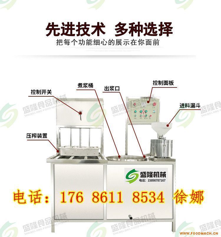 該機(jī)可同時(shí)生產(chǎn)各種豆腐干、豆腐皮、彩色豆腐、豆腐腦、豆?jié){等,可應(yīng)用于商場(chǎng)、超市、菜市場(chǎng)、居民小區(qū)等,適應(yīng)不同地區(qū)的消...