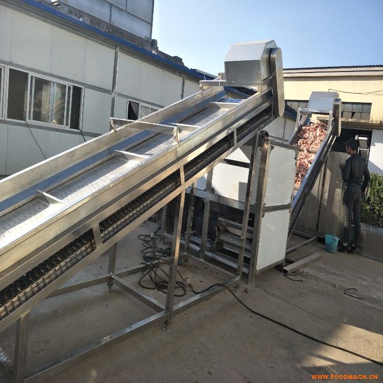 XJ-6米洗姜機全自動洗姜機鮮姜清洗機大姜進入水槽,進入氣泡清洗裝置,在氣泡裝置水流下大姜被充分打散、翻滾、清洗、網(wǎng)帶傳...