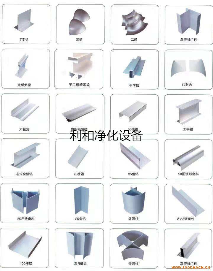 • 凈化工程配套的系列鋁合金型材:分別有銀白型、電泳型、噴塑型等。具體規(guī)格有槽鋁,內(nèi)圓弧鋁(PVC塑料底座),外圓弧鋁,門框鋁...
