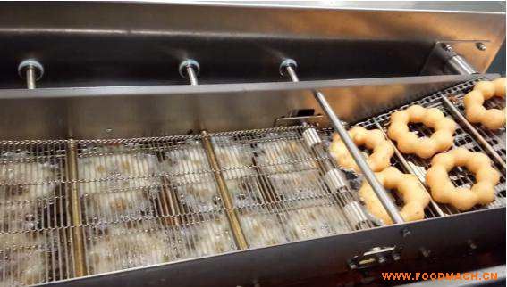 MD100+采用厚實(shí)的304不銹鋼。翻轉(zhuǎn)油炸輸送帶會(huì)油炸甜甜圈的兩面且用時(shí)相同,確保甜甜圈顏色統(tǒng)一。它也可以連接自動(dòng)淋糖漿機(jī)用...