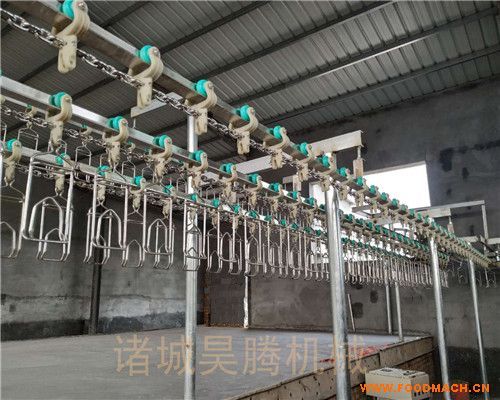 三黃雞屠宰流水線:是由T型軌道,尼龍懸掛滑架,不銹鋼(或錳鋼鍍鋅)錨鏈條,不銹鋼掛雞(鴨、鵝、兔、鵪鶉)鉤,導(dǎo)向輪總成...