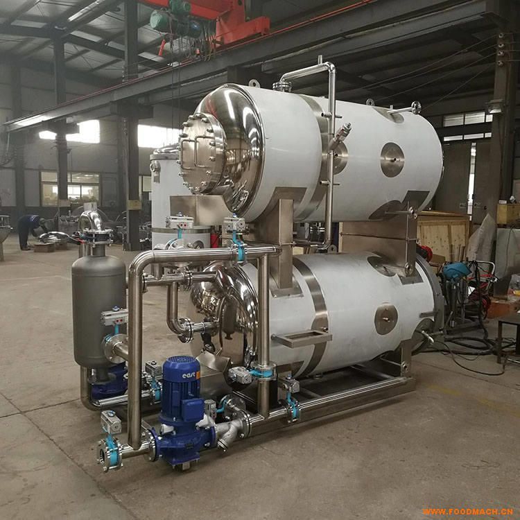 熱水循環(huán)式殺菌:殺菌時(shí)鍋內(nèi)食品全部被熱水浸泡,這種方式熱分布比較均勻。