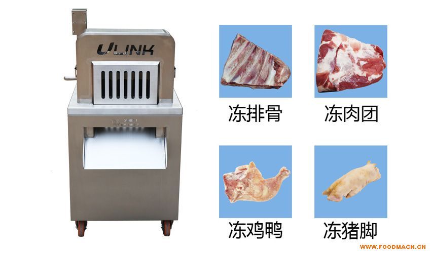 適用于零攝氏度到零下五攝氏度的冷凍排骨、凍五花肉、凍半片鴨和半片雞一次切塊成型。