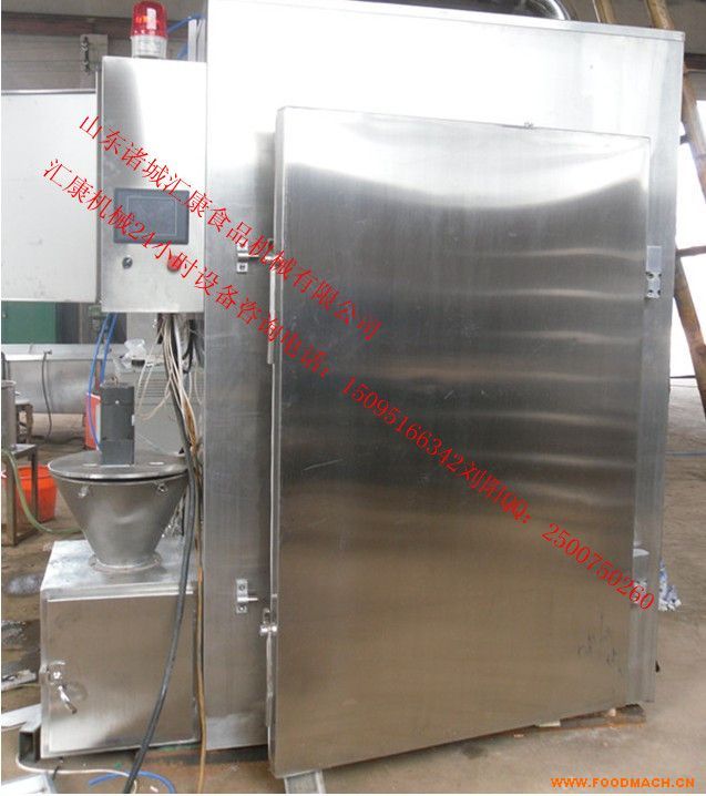烤腸煙熏爐|香腸烘干爐|要想味道美,關(guān)鍵在于煙熏。一般的煙熏都是用木粉:蘋(píng)果木、甘蔗和小米按照3:1的比例和糖來(lái)煙熏顏色。木粉加白糖煙熏成淡白黃色,木粉加紅糖煙熏成煙熏紅色?灸c煙熏爐像這樣色正味美的產(chǎn)品,一經(jīng)上市肯定會(huì)受到顧客的青睞。專(zhuān)業(yè)的生產(chǎn)廠家可以為您提供很多很好的生產(chǎn)操作建議。如果您現(xiàn)在還在耗費(fèi)大量的人力和物力、沿用傳統(tǒng)的煙熏工藝的話,趕快使用新型的香腸烘干爐代替他們吧。生產(chǎn)量小的煙熏香腸烘干爐適合一天或者一次生產(chǎn)量不大的用戶用、或者是小門(mén)頭例如煙熏燒雞、香腸、烤鴨、豆腐干等小生產(chǎn)量的用戶選擇。