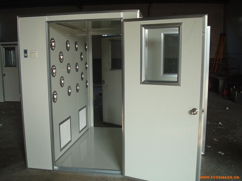 1.頂吹風淋室由箱體、不銹鋼門(鋼板烤漆門或帶視窗的彩鋼板門)、粗效過濾器、高效過濾器、風機、靜壓箱、噴嘴聯(lián)鎖控制器,操作面板,感應(yīng)裝置等幾大部件組成。