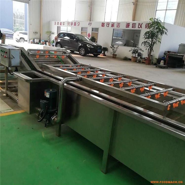 本機(jī)輸送部分采用su304不銹鋼網(wǎng)帶,運(yùn)行平穩(wěn)、使用壽命長(zhǎng)等特點(diǎn),否和食品衛(wèi)生要求。設(shè)備中有氣泡發(fā)生裝置,是物料成翻滾狀態(tài),去除表面農(nóng)殘的功效,同時(shí)可加入適量的藥劑,進(jìn)行消毒固色,漂浮物可以從溢流槽溢出,沉淀物從排污口排出,以達(dá)到清洗的目的。具有清潔凈高、節(jié)能、節(jié)水、設(shè)備穩(wěn)定可靠等特點(diǎn)。操作簡(jiǎn)單,維修方便、方便連線。(可根據(jù)客戶要求附帶臭氧殺菌)
