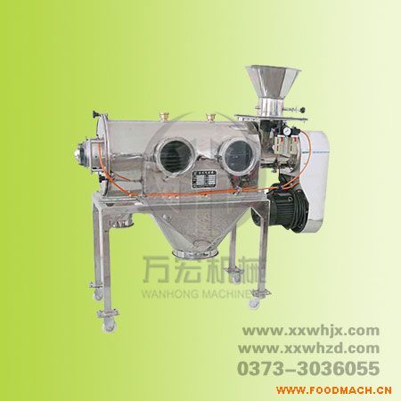 它的篩網(wǎng)為圓筒狀,置于機體內(nèi),物料通過螺旋輸送系統(tǒng)后,和氣流混合、霧化進入網(wǎng)筒內(nèi);通過網(wǎng)筒內(nèi)風(fēng)輪葉片使物料同時受離心力和旋風(fēng)推進力,從而能使物料噴射過網(wǎng),由細料排出口排出,不能過網(wǎng)的物料沿網(wǎng)筒壁從粗料排出口排出。