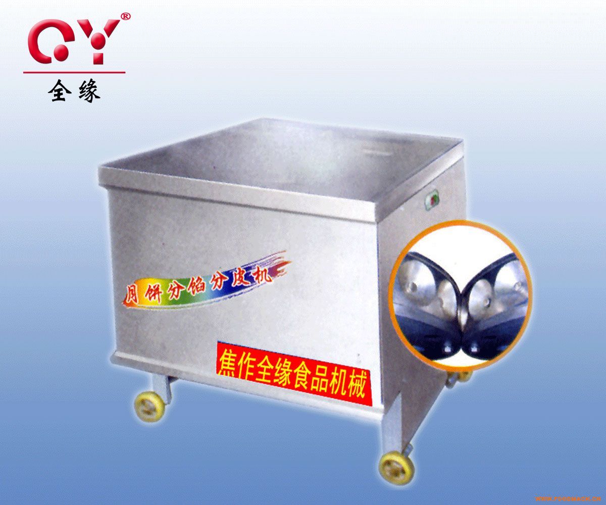 月餅元宵團(tuán)餡機(jī)一機(jī)多用,也叫分餡機(jī)。對月餅皮面、面包面、綠豆沙、元宵皮,餡分切,可制桃酥、口酥、櫻桃酥均可使用。 它代替大批生產(chǎn)月餅及其它食品中等量分餡及皮作用,取代了幾十個(gè)人勞動(dòng)力,只要一機(jī)就可大有作為.本機(jī)速度快,重量均勻、此機(jī)性能優(yōu)良,結(jié)構(gòu)合理.小巧玲瓏,移動(dòng)方便,有了它即省時(shí)、省力、干凈又衛(wèi)生.特別是生產(chǎn)月餅,此機(jī)是必不可少的設(shè)備.
