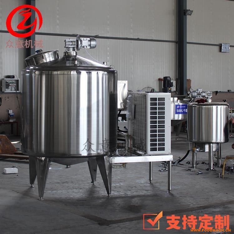 主要由罐體、攪拌器、制冷機(jī)組、電氣控制等幾部分組成。罐體采用雙層不銹鋼制成(SUS304或可根據(jù)客戶要求定制),經(jīng)精密拋光處理,污垢不易積存,易清洗耐腐蝕。在內(nèi)外罐體之間采用了聚胺酯硬質(zhì)泡沫板,該材料具有導(dǎo)熱系數(shù)低、比重輕、強(qiáng)度高、吸水率低的保溫層,保溫性能好。本產(chǎn)品設(shè)計、制造技術(shù)先進(jìn)、性能可靠,冷卻、保溫性能和衛(wèi)生標(biāo)準(zhǔn)。