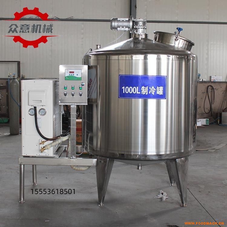 鮮奶制冷罐主要由罐體、攪拌器、制冷機(jī)組和電器控制等幾大部件組成。制冷罐型號(hào)多樣,品類齊全,比較小型的有150/200L,300L,500L,800L,較大一點(diǎn)的有1000L以及臥式2000L的。根據(jù)產(chǎn)量不同,我們所使用的制冷罐的型號(hào)就不一樣。不管是小型牧場(chǎng)用,奶吧店里用,還是工廠里用,您都可以根據(jù)自己的需求咨詢定制。制冷罐冷卻速度快,所需空間小,也能有效避免食品的干耗。(食品加工機(jī)械廠家Tel:155*5361-8501)