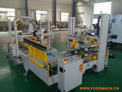 全自動紙箱包裝線該生產(chǎn)線包括: 1 臺折蓋封箱機和1臺角邊封箱機