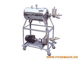 將硅藻土助濾劑在預涂缸中按一定比例與待濾液(一般1:8—1:10)配成懸浮液,經(jīng)過預涂泵沖入本機中,將出來的液體回至預涂缸中,經(jīng)過反復循環(huán),(均需20分鐘)直至液體透明清亮并達到濁度為止,此時便在濾柵上形成了附著穩(wěn)定均勻分布的硅藻土過濾層,接著進行過濾過程。