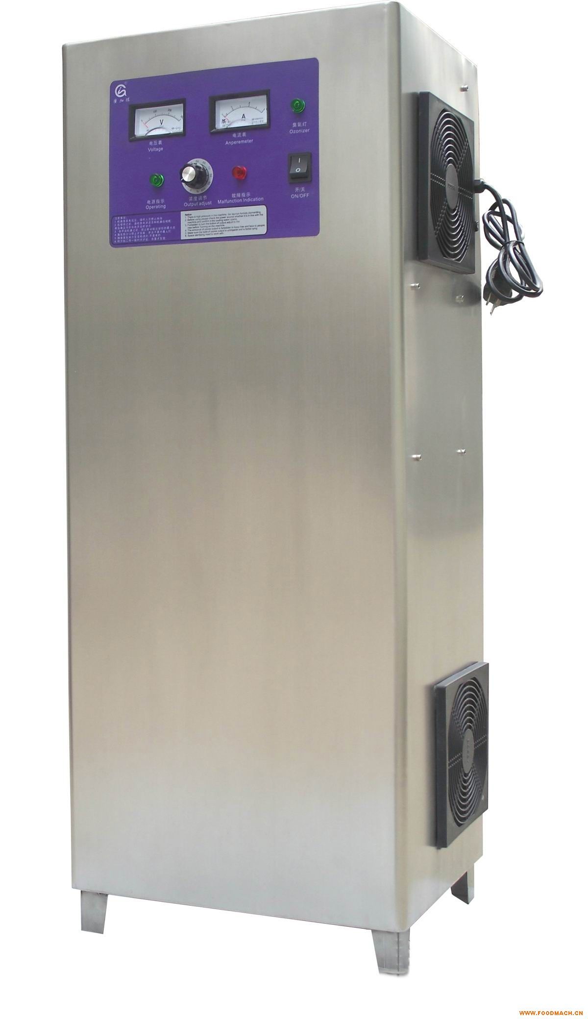 臭氧發(fā)生器是用于制取臭氧氣體(O3)的裝置。臭氧易于分解無法儲(chǔ)存,需現(xiàn)場(chǎng)制取現(xiàn)場(chǎng)使用(特殊的情況下可進(jìn)行短時(shí)間的儲(chǔ)存),所以凡是能用到臭氧的場(chǎng)所均需使用臭氧發(fā)生器。臭氧發(fā)生器在飲用水,污水,工業(yè)氧化,,食品加工和保鮮,醫(yī)藥合成,空間滅菌等領(lǐng)域廣泛應(yīng)用。 臭氧發(fā)生器產(chǎn)生的臭氧氣體可以直接利用,也可以通過混合裝置和液體混合參與反應(yīng)。