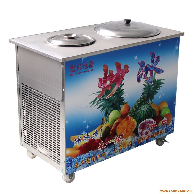 4、鍋體用加深加厚不銹鋼制成,直接用鋼鏟炒冰,省時(shí)省力,炒冰速度是一般炒冰機(jī)的三倍以上。