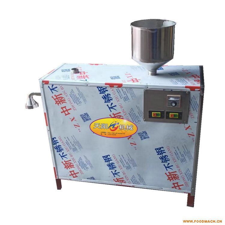 自熟湯子機(jī)采用恒溫蒸漿熟化成型新工藝,替代手工攥條,減輕了勞動(dòng)強(qiáng)度,磨好的玉米漿經(jīng)水浴箱熱水蒸煮熟化,螺旋推進(jìn)器推揉擠壓聚合而成,出機(jī)即熟,一次成型,無(wú)須下鍋。產(chǎn)品厚薄寬窄、粗細(xì)扁圓等規(guī)格可根據(jù)需要任意更換模具調(diào)整。