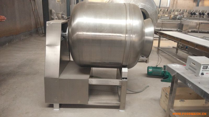 600L滾揉機每罐滾揉270kg,功率2.95kw,真空度0.04-0.08 kpa,外形尺寸2250*1300*1750,筒體為食品級韓國進口304優(yōu)質板材,壁厚3mm,堅固耐用,外表拉絲拋光,美觀衛(wèi)生。
