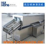 物料通過(guò)輸送帶進(jìn)入清洗箱內(nèi)后,網(wǎng)帶上下兩方的噴嘴通過(guò)高壓水泵的作用,向物料噴射高壓水流,將物料表面的泥沙及其他雜物沖掉排出,達(dá)到清洗之目的。
