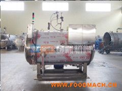 一般罐頭食品廠對罐頭作常壓水煮加熱殺菌處理時都采用本形式的臥式殺菌鍋,本設(shè)備通過引入壓縮空氣可實(shí)現(xiàn)反壓殺菌。如冷卻需在鍋內(nèi)進(jìn)行,須用水泵打入鍋頂部的噴水管(或采用水循環(huán)系統(tǒng))。
