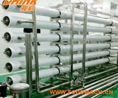 是一種以壓力梯度為動(dòng)力的膜分離過(guò)程,其如同分子過(guò)濾器一樣,可有效地去除水中的溶解鹽類(lèi)、膠體、細(xì)菌和有機(jī)物。反滲透過(guò)程是自然滲透的逆過(guò)程,在使用過(guò)程中,為產(chǎn)生反滲透過(guò)程,需用水泵將含鹽水溶液施加壓力,以克服其自然滲透壓,從而使水透過(guò)反滲透膜,而將水中溶解鹽類(lèi)等雜質(zhì)阻止在反滲透膜的另一側(cè):同時(shí)為防止原水中溶解鹽類(lèi)雜質(zhì)在膜表面聚集,運(yùn)行時(shí)濃水應(yīng)不斷地沖洗膜表面并將濃水中及膜面上的雜質(zhì)帶出,繼而實(shí)現(xiàn)反滲透除鹽凈化的全過(guò)程。