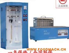 由定氮蒸餾器、定氮消化爐兩大部分組成的蛋白質(zhì)測(cè)定儀,是根據(jù)經(jīng)典的凱氏定氮原理研制生產(chǎn)的KDN-AZ定氮蒸餾器的特點(diǎn)是:采用不銹鋼電熱圈加熱,使自來水經(jīng)過冷凝器、穩(wěn)壓器進(jìn)入蒸汽發(fā)生器產(chǎn)生連續(xù)穩(wěn)定的蒸汽,對(duì)已消化的樣品進(jìn)行蒸餾,將消化過程中產(chǎn)生的硫酸銨轉(zhuǎn)化為氨,并與硼酸反應(yīng)生成硼酸氫銨,經(jīng)滴定、計(jì)算得出樣品蛋白質(zhì)含量。每個(gè)樣品經(jīng)約七分鐘蒸餾即可完成。