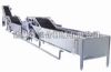 - 果蔬清洗機--采用高壓氣泡水浴清洗,清洗能力大、洗凈率高且不損傷物料,物料經(jīng)網(wǎng)帶輸送至噴淋清洗后進入下道工序。